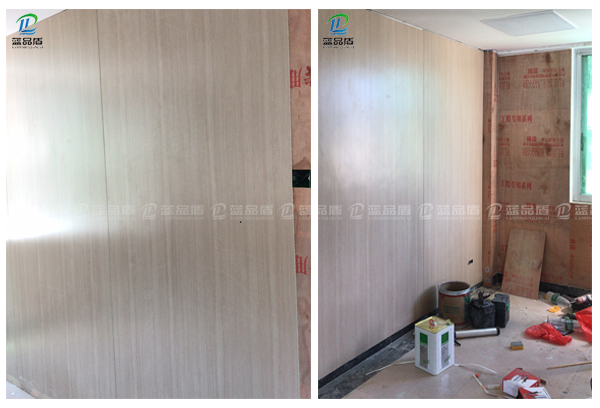 由于此次医院的墙面不平整,所以客户选择用工程系列款的阻燃胶合板作为打底,再采用强力胶水直接粘贴木纹树脂板,简单快速的安装方式。当然,如果墙面是平整、光滑、且结实、不掉漆的情况下,也就不需要打底了,直接就可以上墙粘贴,效果也是一样的。