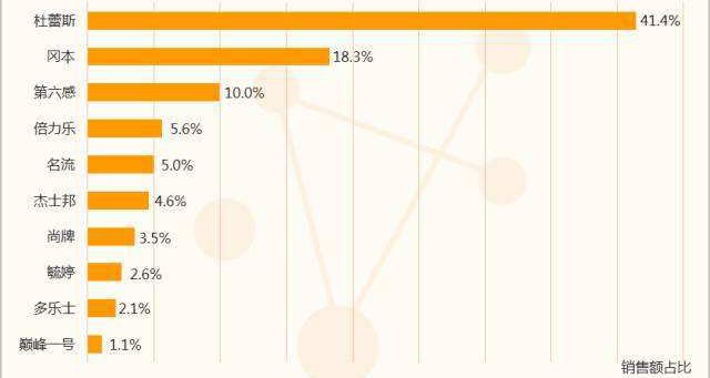 3. 目前我国避孕套销售情况,知名流通品牌(杜蕾斯,冈本,杰士邦等)占全国避孕套的市场份额85%以上。其余大大小小品牌都无法打破这个局面。