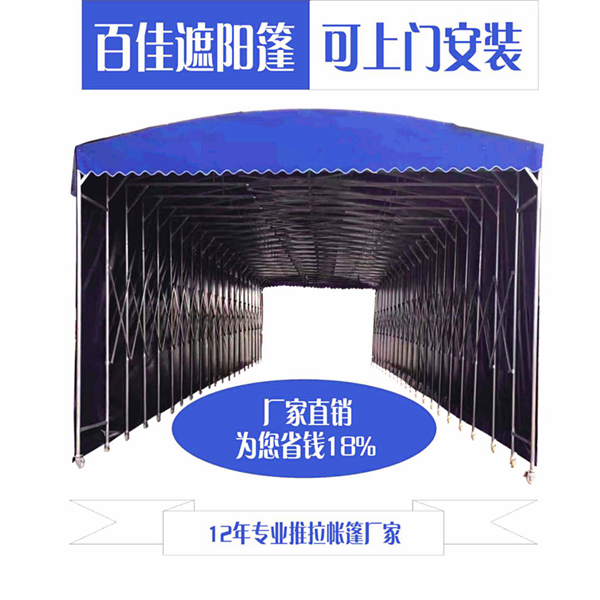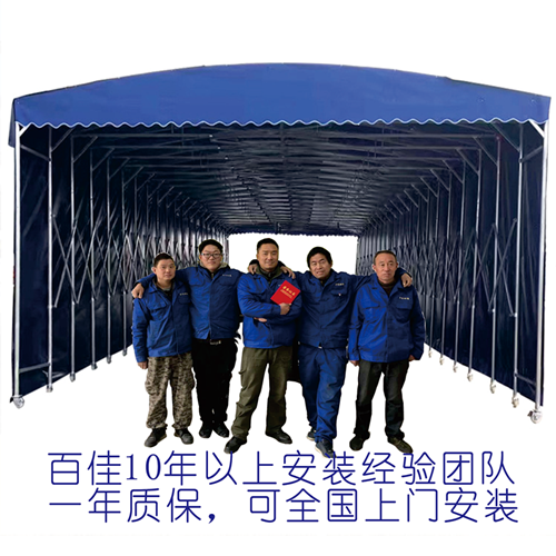 百佳推拉棚采用优质镀锌方管作为主架,横梁是稳固的三角结构,独有的三角形交叉设计,使推拉伸缩更加轻松便捷;骨架均采用加厚的镀锌钢管,使用寿命长,承受压力高。