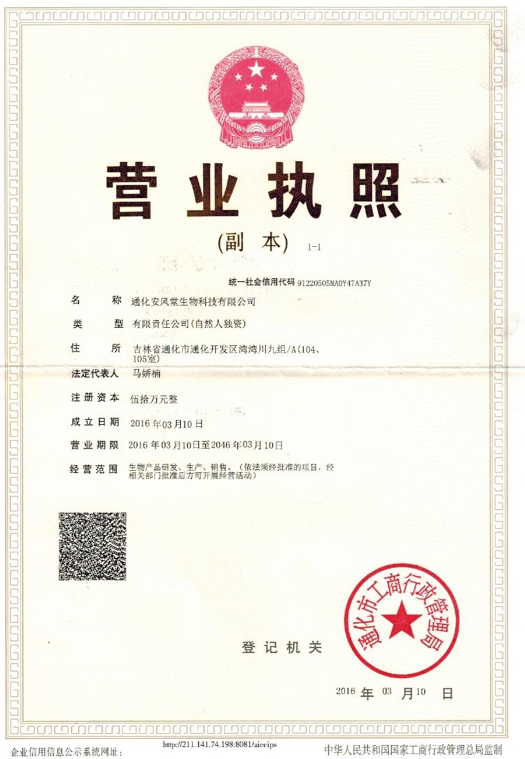 公司名称:通化安风堂生物科技有限公司 联系人:马业忠...