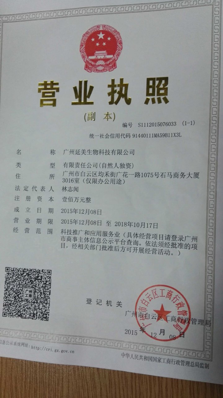 公司名称:广州延美生物科技有限公司 联系人:林总 电话:18688416628...