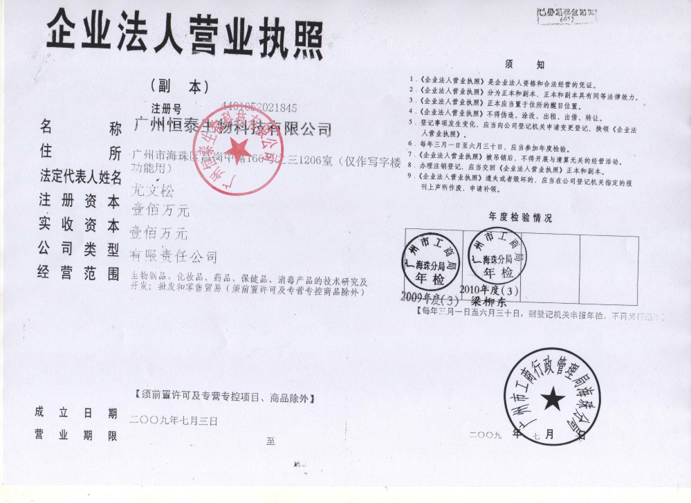 公司名称:广州恒泰生物科技有限公司 联系人:王小姐 电话:020-84278098...