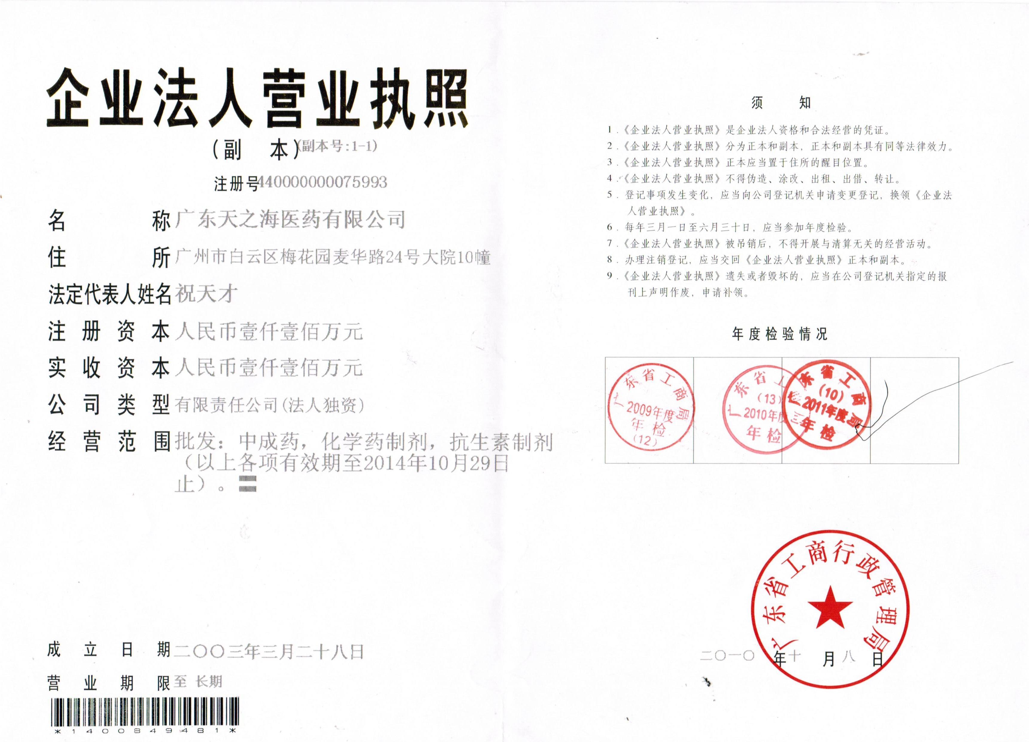 公司名称:广东天之海医药有限公司 联系人:谭经理 电话:020-87061727;87249957...