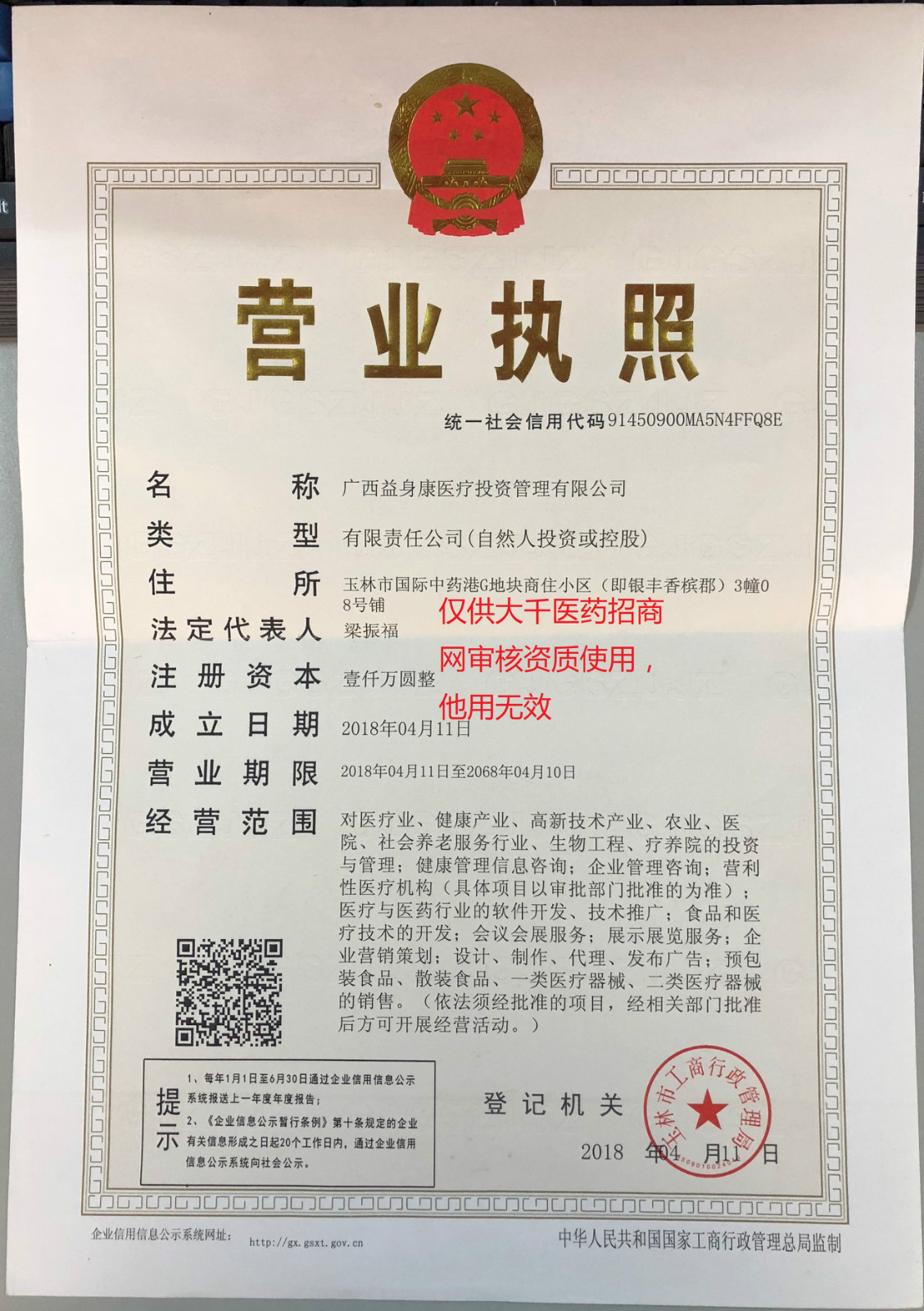 广西益身康医疗投资管理有限资金为1000万元,代理销售国内几大中药生产商的产品十余年,由省级做到全国独家代理。集团公司对医疗业、健康产业、高新技术产业、农业、医院、社会养老服务行业,生物工程、疗养院的投资与管理;健康管理信息咨询;企业管理咨询;营利性医疗机构医疗与医药行业的软件开发、技术推广;食品和医疗技术的开发;会议会展服务;展示展览服务;企业营销策划;设计、制作、代理、发布广告;预包装食品、散装食品、一类医疗器械、二类医疗器械的销售。