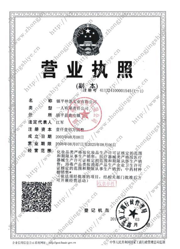 镇平仲景实业有限公司创建于1988年,其前身是“镇平卧龙制药厂”和“镇平仲景保健日化厂”,1998年合并为“镇平县仲景药业有限公司”。2014年更名为“镇平仲景实业有限公司”,从事“化妆品”、“医疗器械”、“消毒剂”生产销售和中药材的种植销售。目前,镇平仲景实业有限公司是国内同行业中资格最老、拥有批准文号最多的厂家之一,是集研发、生产、销售为一体的大型企业。镇平仲景实业有限公司连年被政府授予“重合同、守信誉企业”、“纳税大户”等称号。经营风格始终如一,不求...