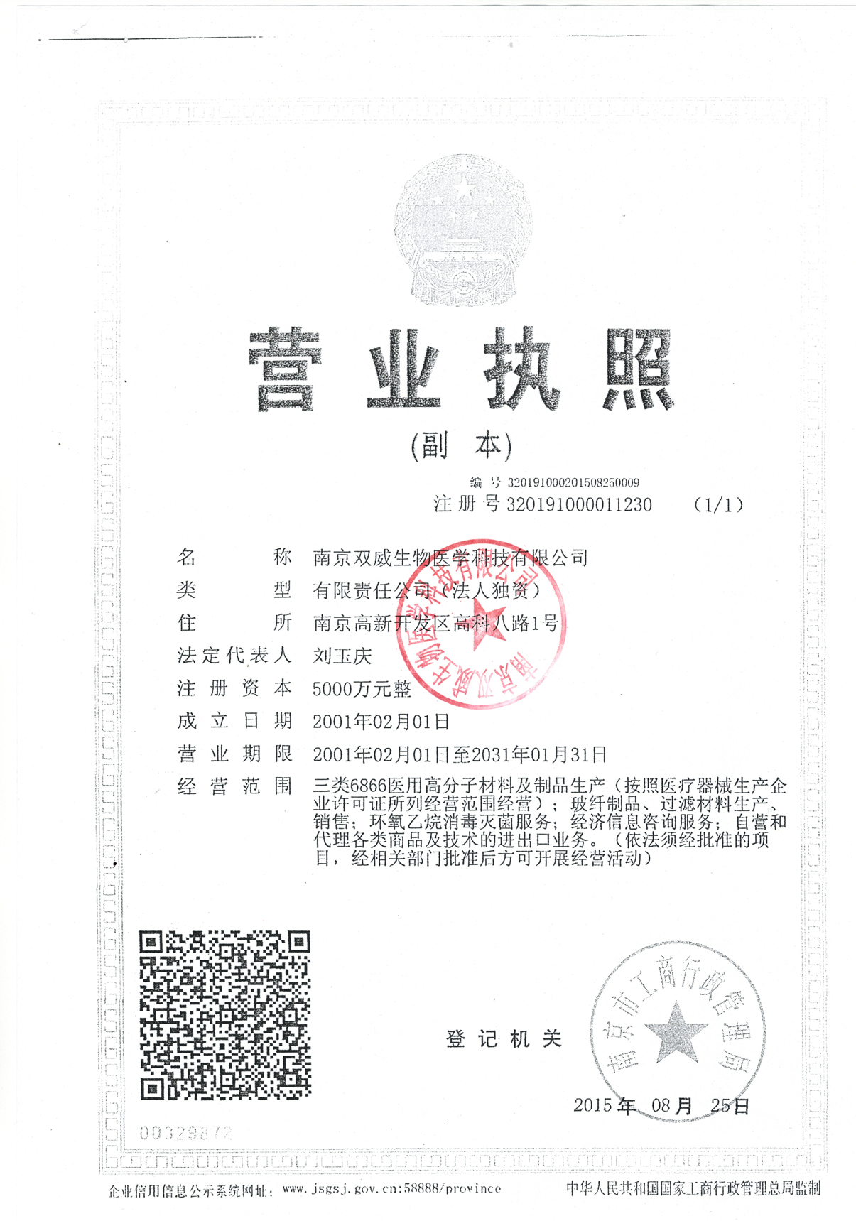 南京双威生物医学科技有限公司是一家致力于血液净化、骨伤和创伤康复、重症急救三大领域的集研发、生产和销售为一体的省级高新技术企业。 公司隶属于中材科技集团(002080)南京玻璃纤维研究设计院,位于南京市高新技术产业开发区生物医药谷。公司成立于2001年2月,注册资本2160万元,现有8000m2的现代化厂房和高标准的GMP净化生产车间以及先进的生产、检测设备,公司拥有教授、高级工程师、硕士、工程师等高级人才70多人。2001年双威生物被评为南京市高新技术企...