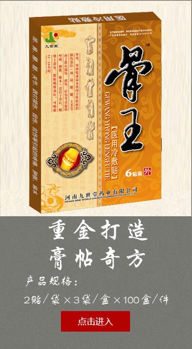 | 【产品用途】 | 用于颈椎病,腰椎病,增生骨刺,腰肌劳损,老风湿,坐骨神经痛 活血止痛,舒筋活络。 |