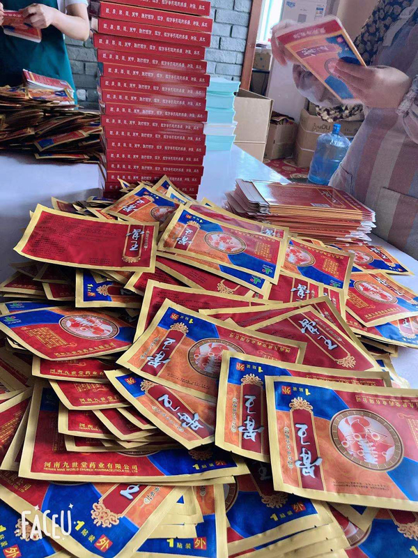 | 【规 格】 | 1贴/袋×4袋/盒×100盒/件 |